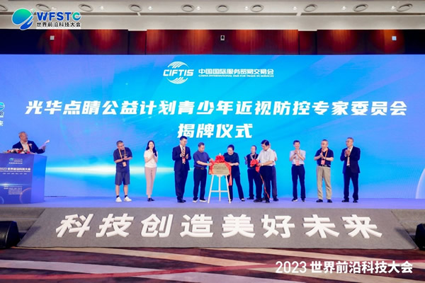 近视防控工作离不开科技的赋能和专家的支持,为了更好地推进实施点睛计划,中国国际科技促进会、中国光华科技基金会联合组建了“青少年近视防控专家委员会”,并现场举行了揭牌仪式,邀请国内外近视防控和眼科领域的众多知名专家学者、科研机构和医疗机构加入,共同推动青少年近视防控工作。