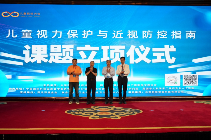 在郑华林先生的主题报告之后,由郑华林先生、孟庆国先生、崔志国先生和中国国际科技促进会标准化工作委员会副主任苏宝塍先生上台,共同启动《儿童视力保护与近视防控指南》课题立项工作。下一步中国国际科技促进会将继续大力推动相关领域的标准化工作,以标准抢占全球儿童视觉健康事业发展的主导权和制高点,不断提升我国在全球儿童视觉健康领域的话语权和影响力。